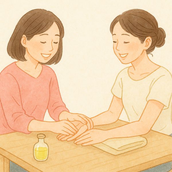 子育てがすこしひと息ついて、これからは自分のための人生を豊かにしたいと思い、まずはセルフケアをするために花まるタッチを習いました。自分の体調や、素直なきもちが、以前よりわかるようになった感じがします。(40代これから楽しみたい!さんより)