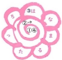 ④は・な・ま・る・た・っち、と言いながら花びらを一枚ずつ描く。