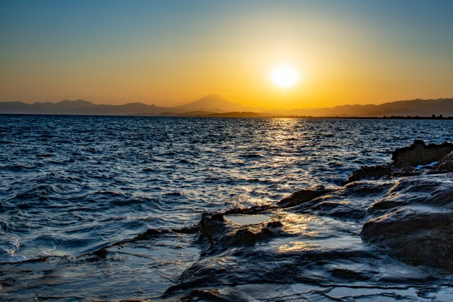 長年にわたる波の侵食でうまれた独特の地形からの夕陽はまさに絶景!