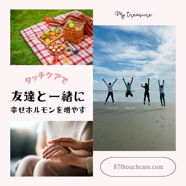 だから肌にやさしくふれるタッチケアは、楽しい・嬉しい・の感性が違った人とでも、一緒に幸せホルモンを増やすことができるのです。
