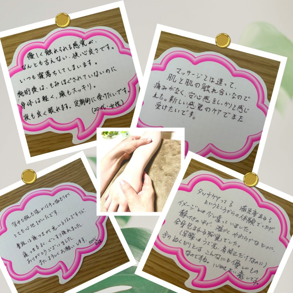 ふれる事・ふれられる事の心地よさのの中で、ご自身の心と体に向き合える時間をご提供いたします。