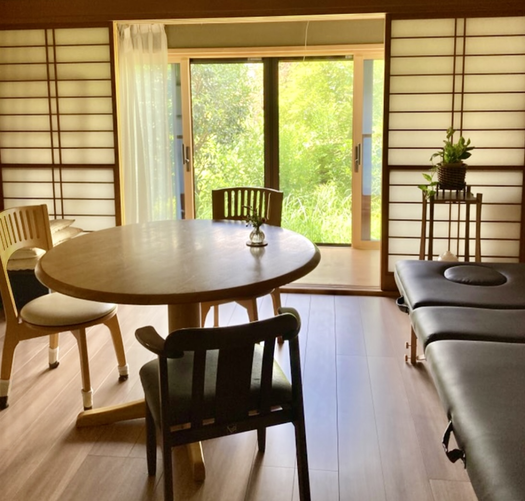 そんな緑豊かな庭から続くサロンで、心まであたためるようなエナジーハンドをお楽しみください!